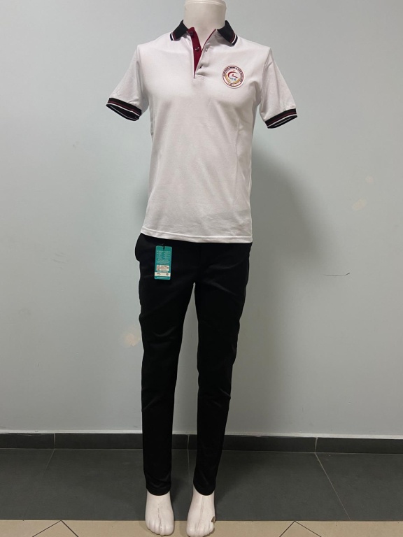Yaka ve kol bandı siyah ( beyaz ve bordo çizgili), sol göğsünde okul arması